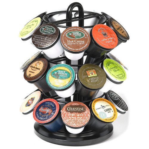 The Nifty Carousel for K-Cups elegantly displays all your favorite K-Cups. The lazy susan base rotates 360-degree, making it extremely easy to find and select your favorite K-Cup flavor. The sleek black powder-coat design looks great on any kitchen counter top. The three-tiered carousel will hold up to 27 K-Cups..../ Nifty Carousel for 27 K-Cups, Black / Storage Coffee